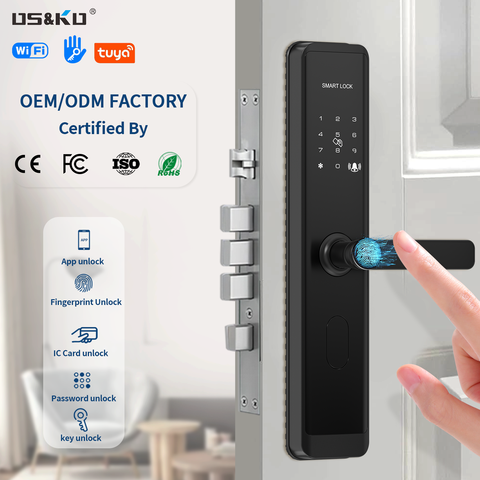 Khóa cửa thông minh Wifi Tuya, khóa điện tử kỹ thuật số thông minh với chức năng vân tay/mật khẩu/thẻ/chìa khóa cho nhà ở